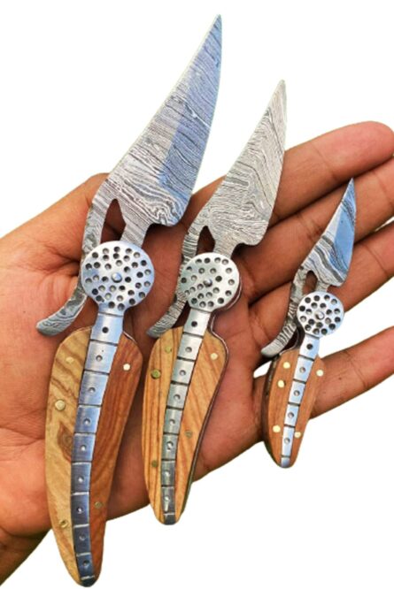 Custom Handmade Damascus Leaf style Pocket knife in Olive wood