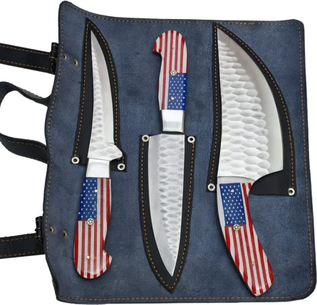 Custom Handmade Chef Knife Set –3 Piece Professional Kitchen Knives & Leather Roll Bag